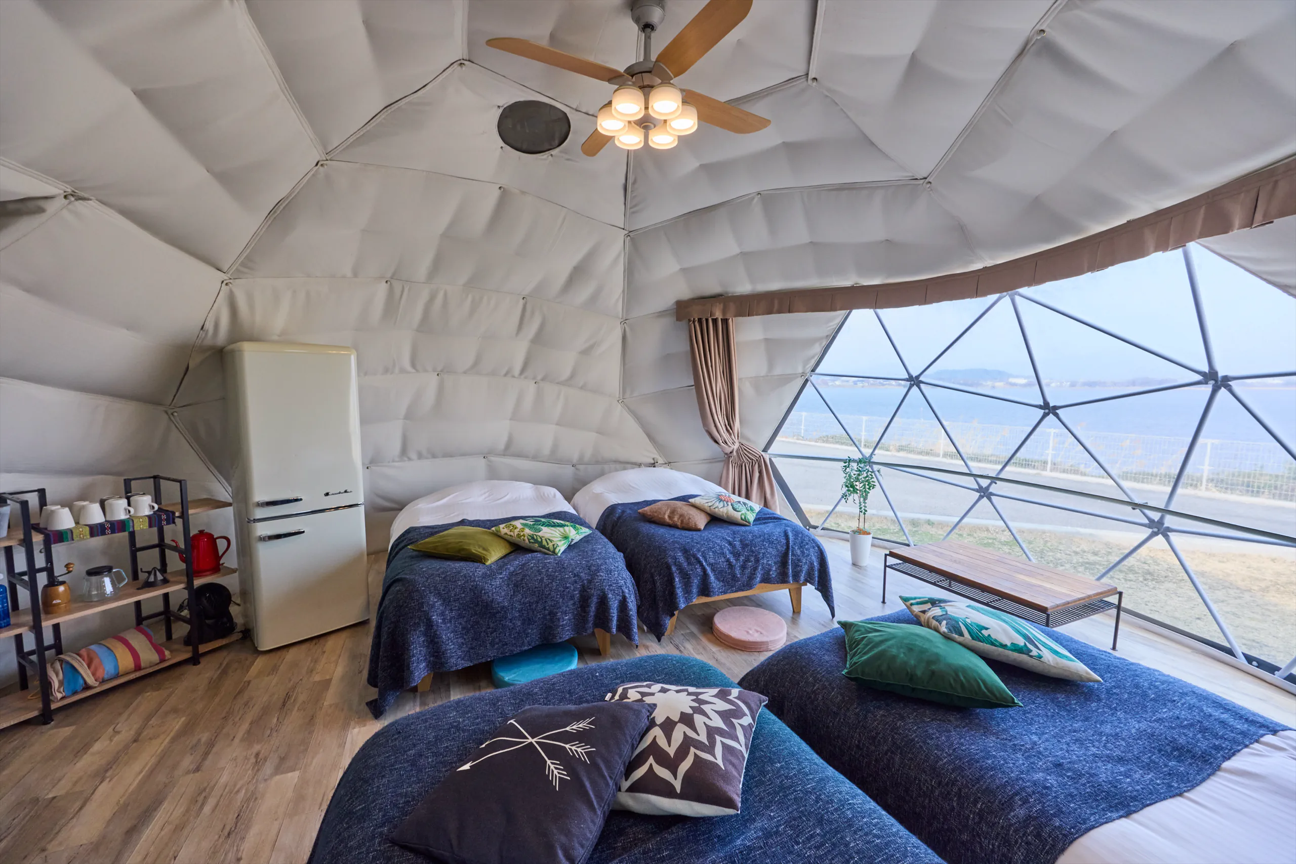 耳を澄ますとドーム越しに聞こえる湖のさざ波が、都市では味わえない自然との一体感を運んでくれます。
