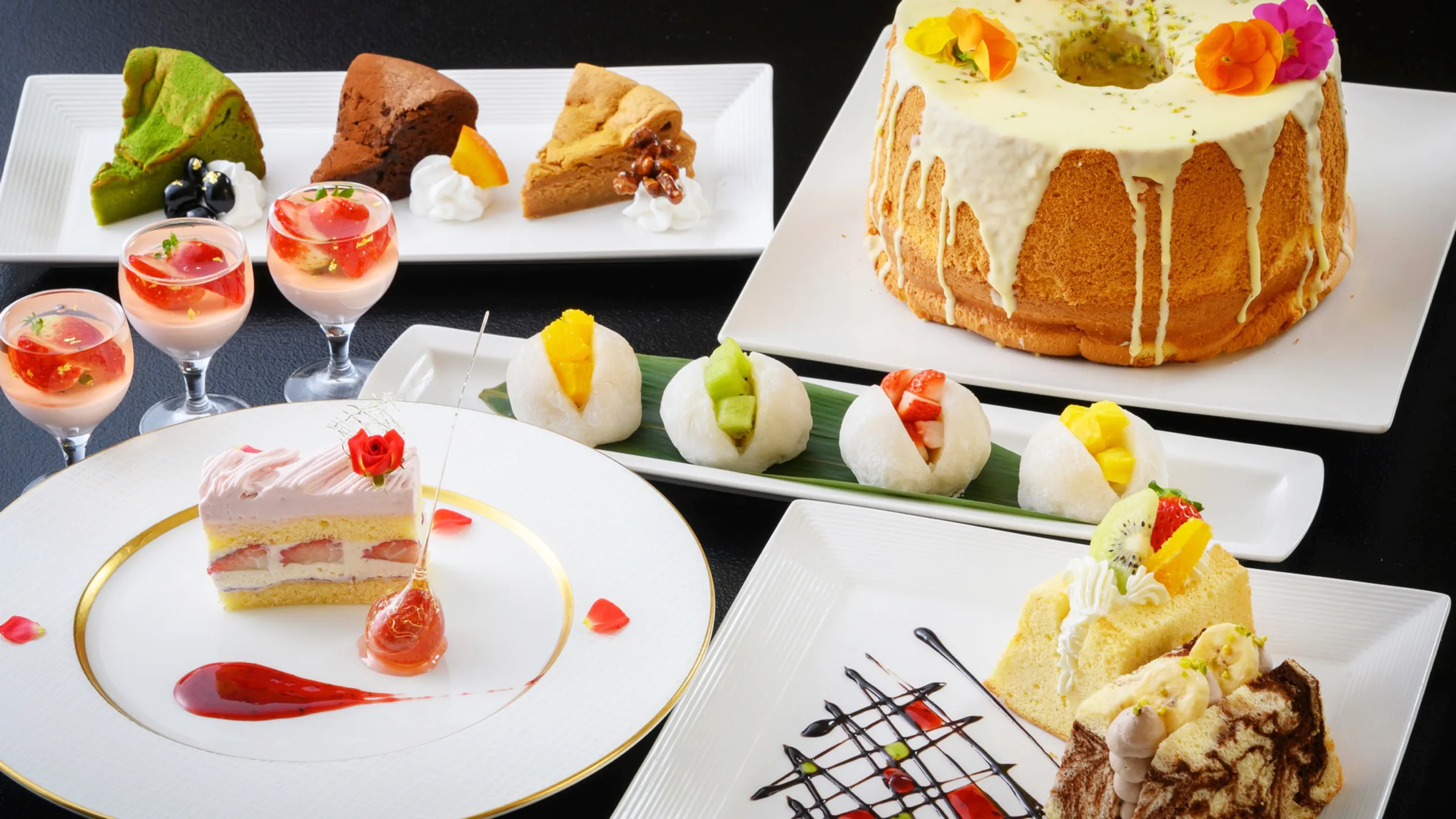 旬のフルーツが彩る美しいデザートの中から、お好みの一品をお選びいただけます。