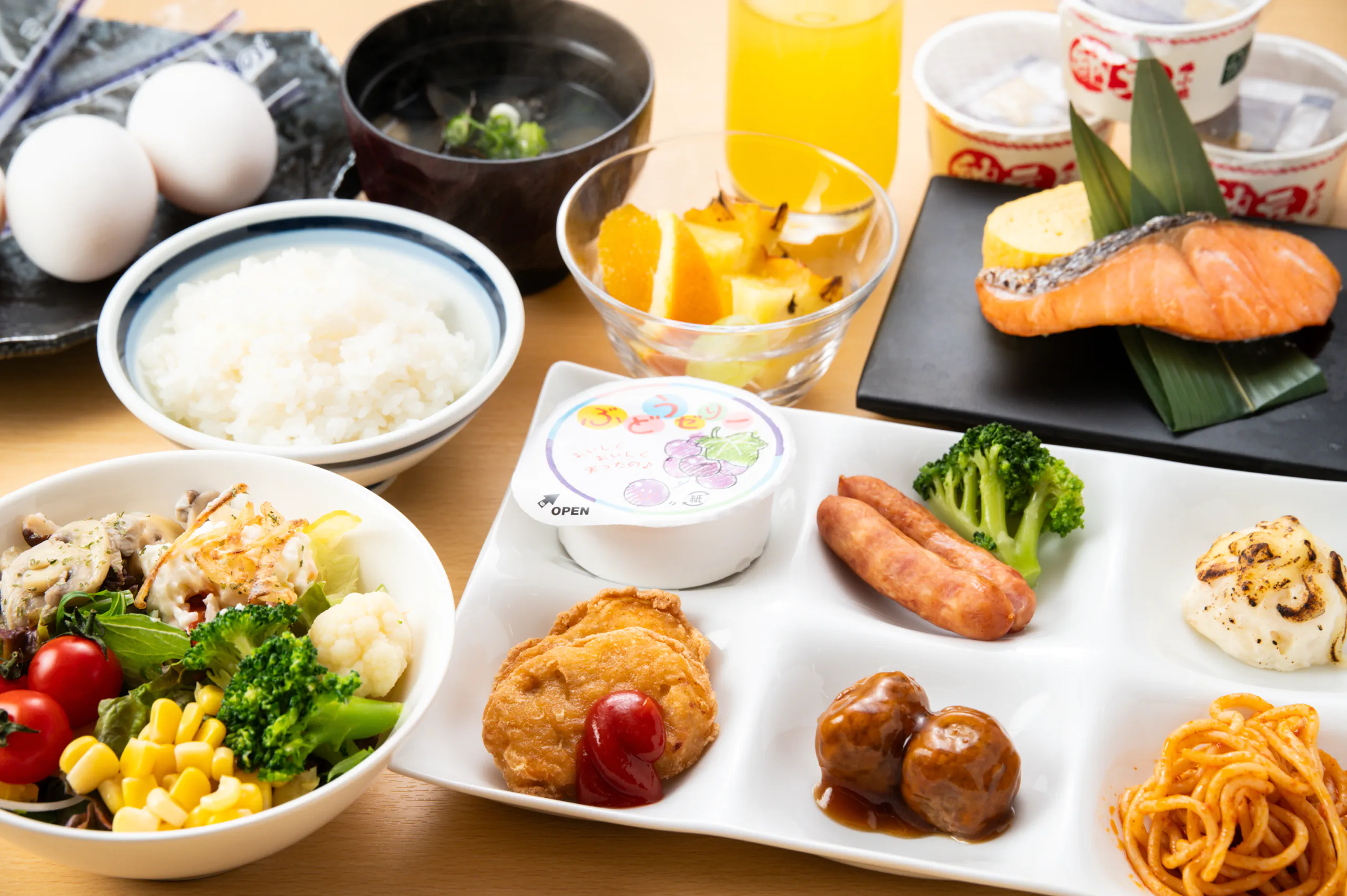 お子様が笑顔になる栄養バランスの良い、朝食をどうぞ。