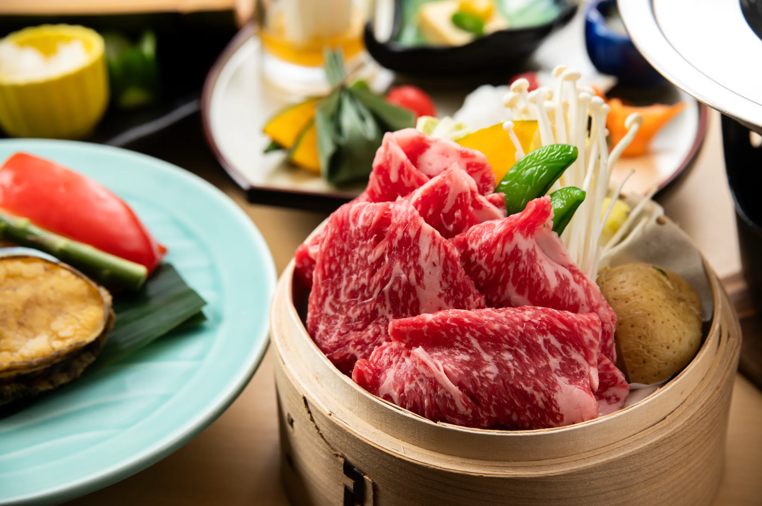 ごタ食は、島根和牛やのどぐろなどの山陰が誇る山海の幸を生かした料理が並ぶ会席料理です。出雲そばなどの山陰ならではの名物も人気の品。パティシエが腕によりをかけて生み出す選べるスウィーツも見逃せません。